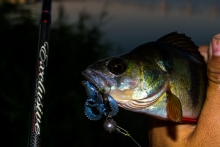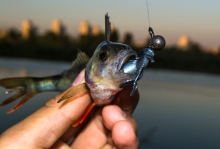 Вчерашний вечер стал крайне не предсказуемый и закончился спонтанной рыбалкой. Решил все таки об бомбить новое для себя место в черте города. Приперся на точку, вид оказался на много приятнее фотографий спутника. Начал с пяти грамм и риппера. Глубина позволяла применять такие веса. Единственное, что мешало - это густой ковер травы по всему дну. Первые поклевки увидел под самыми ногами, на песочке, что дало пищу для раздумий. Пошел искать что то похожее на пляж. А он там! Несколько поклевок и какие то особи преклонного возраста решили искупаться прямо по траектории заброса. Сменил я приманку, вес и пошел искать счастья. Не мало точек прошел и нашел! Небольшая заросшая отмель приносила поклевки с каждого заброса. Это уже на много веселей, хотя продлилось не так уж и долго. Вечером уже перед уходом решил пляжик проверить и не прогадал. Зорьку встречать вышли мы вместе. Сперва началась канонада мелочи. Доедали даже с берега. А позже ночка темная подарила трофейчик, который поленился хорошо клюнуть, но сопротивление стоило многого.