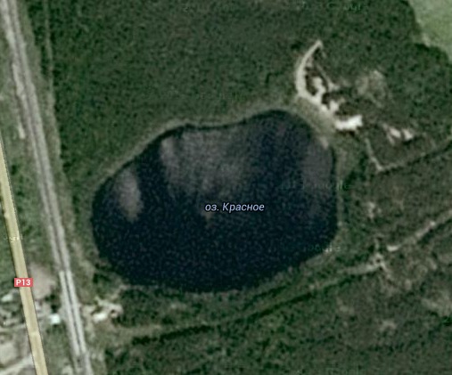 Озеро Красное находится в Ганцевичском районе Брестской обл., в 11 км на юг от г. Ганцевичи, возле деревень Полонь и Люсино и относится к бассейну р. Цна (лев. приток р. Припять). Бессточное. Местность преимущественно равнинная, низинная, густо заросшая лесом, местами болотистая. Берега низкие, заросшие лесом и кустарником, местами заболоченные. Дно песчаное, выстлано илом и сапропелем, замусорено корягами. Зарастает умеренно. В озере обитают щука, линь, карась, окунь и др. рыба.