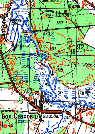 В районе д. Большое Стахово, расположенной примерно в 7,5 км на запад от г. Борисов, в пойменной и припойменной зонах р. Березина находится 16 безымянных пойменных и старичных озер. Данные озера относятся к Борисовскому району Минской обл. Сведений об их параметрах и окружающей их местности не найдено.