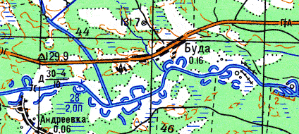 В районе д. Буда, расположенной примерно в 17 км на юго-запад от г.п. Октябрьский, в припойменной и пойменной зонах р. Ореса находится 19 безымянных пойменных и старичных озер. Данные озера относятся к Октябрьскому району Гомельской обл. Сведений об их параметрах и окружающей их местности не найдено.