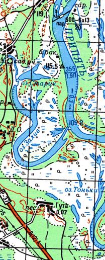 В районе д. Гута, расположенной примерно в 24 км на юго-восток от г. Мозырь, в припойменной и пойменной зонах реки Припять находятся 31 безымянное пойменное и старичное озеро. Данные озера относятся к территории Мозырского района Гомельской обл. Сведений об их параметрах и окружающей их местности не найдено.