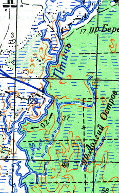 В районе урочища Долгий Остров, расположенного примерно в 23 км на юго-восток от г.п. Глуск, в припойменной и пойменной зонах р. Птичь находится 15 безымянных пойменных и старичных озер. Данные озера относятся к Глусскому району Могилевской обл. Сведений об их параметрах и окружающей их местности не найдено.