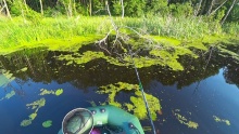 Изначально я выбрался с лодкой в надежде поймать линя и крася, коими славиться данный водоем. К слову, я уже рыбачил здесь два раза в прошлом сезоне и оба раза безуспешно. Первый выезд в этом году также мог оказаться холостым, если бы не взятая про запас удочка с боковым кивком. До 11 часов я не получил ни одной поклевки на поплавочные удочки, хотя и прикормил, и перепробовал разные насадки и комбинации из мотыля, опарыша и навозного червя.